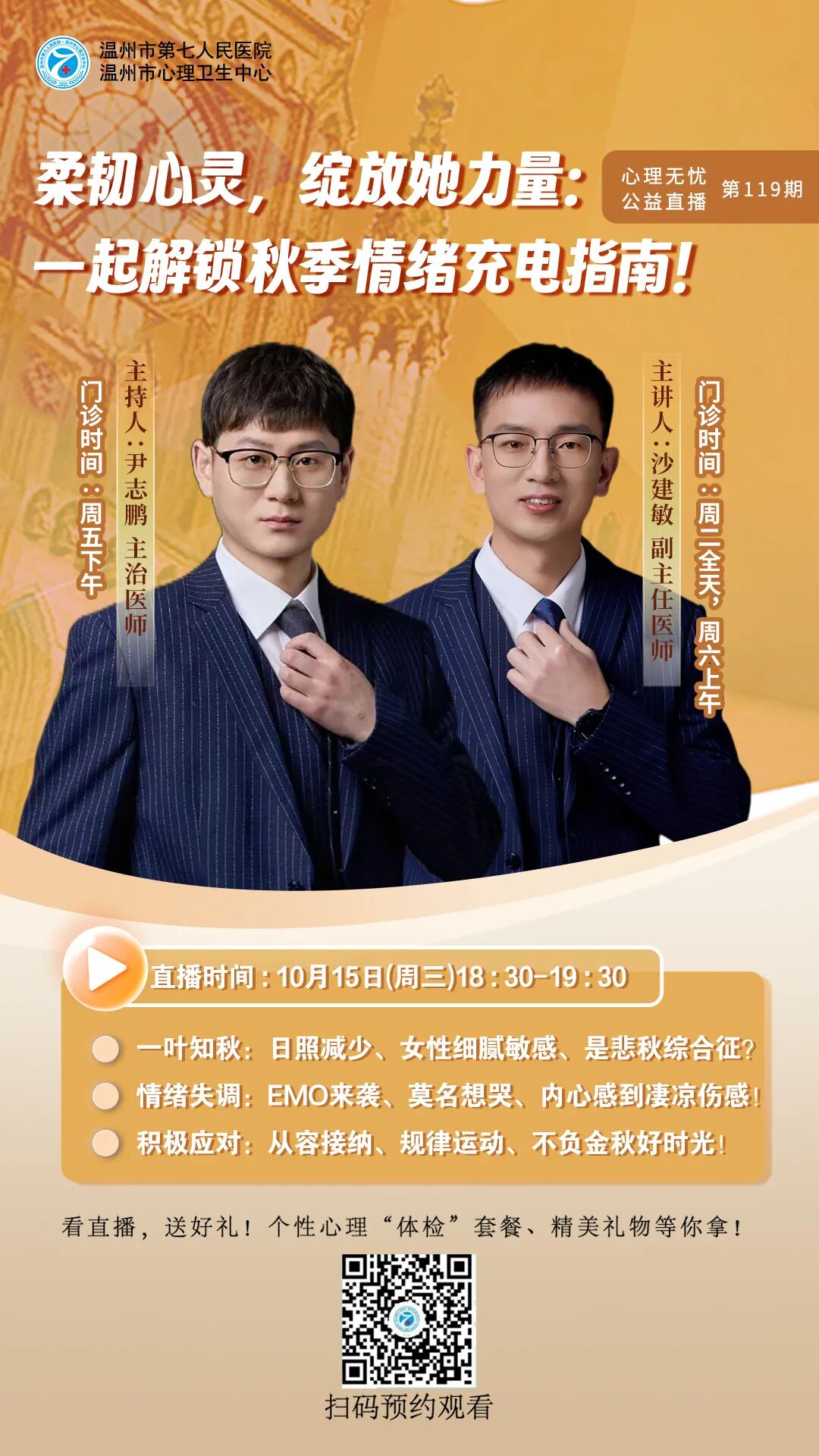 情感障碍科于2015年成立并成为医院院级重点学科,科室发展较快,为了满足患者需要,2020年元月分为501病区和502病区。是温州医科大学、济宁医学院等协作院校医学生的临床实习教学的主要科室,是我院国家医师规范化培训的主要科室 ,是集医疗、科研、教学于一体的综合科室。