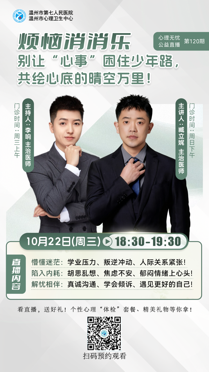 本院儿童精神科是温州市青少年诊治中心之一。科室创建于2018年,系院级医学重点学科(儿少心理科),2016年荣获“市青年文明号”称号,2017年获得“温州市巾帼文明岗”称号。2019年获“温州市青少年诊疗中心”,是温州医科大学医师培训实习基地。温州大学心理系教学科室。2023年2月正式命名为儿童精神科。